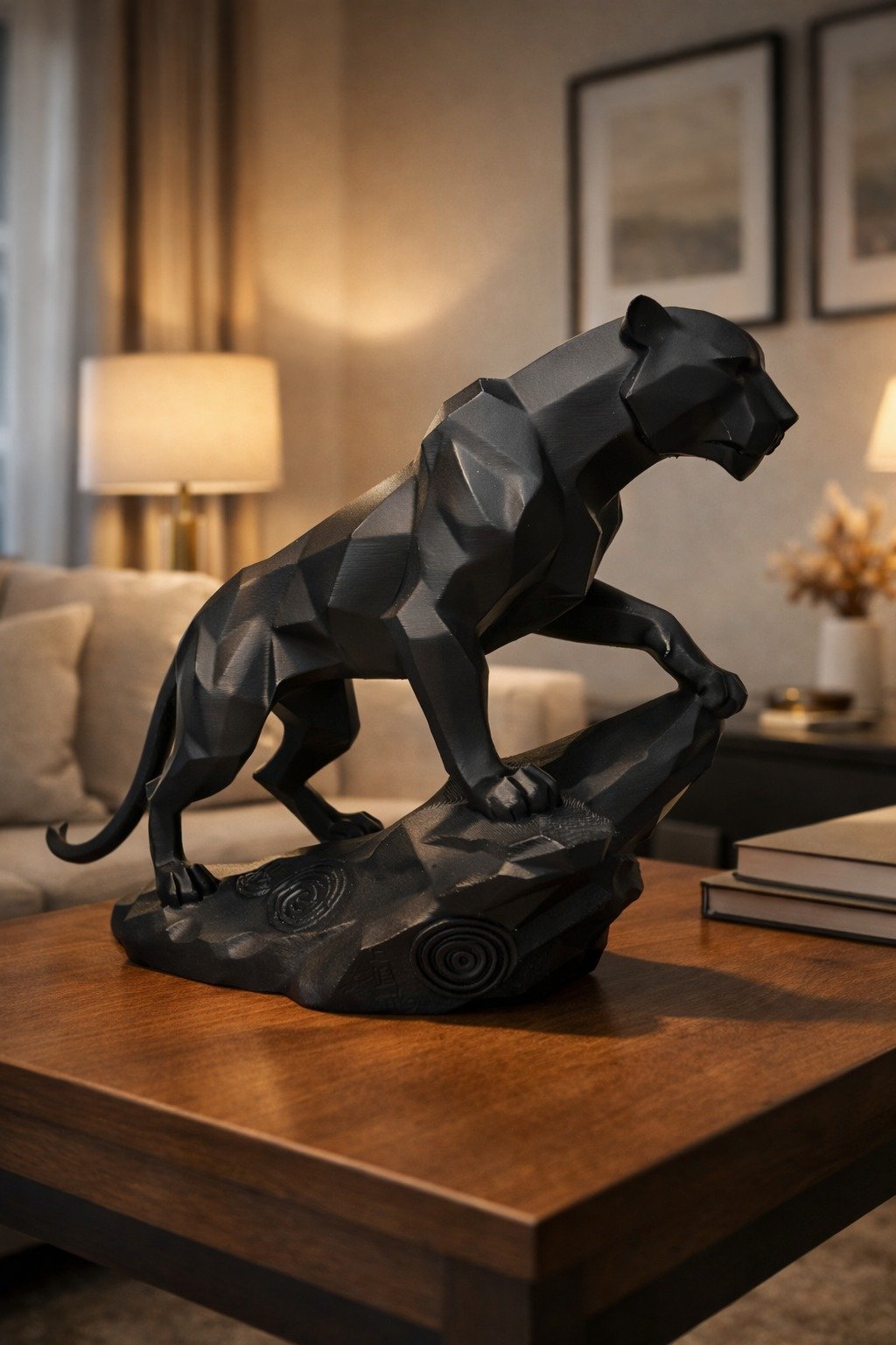 Yeh matte black panther sculpture modern aur classy look deta hai jo living room, bedroom, office desk, TV unit ya console table ke liye perfect hai.